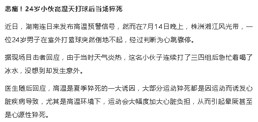 24岁小伙高温天打球后猝死:好端端的运动,为何会有猝死...